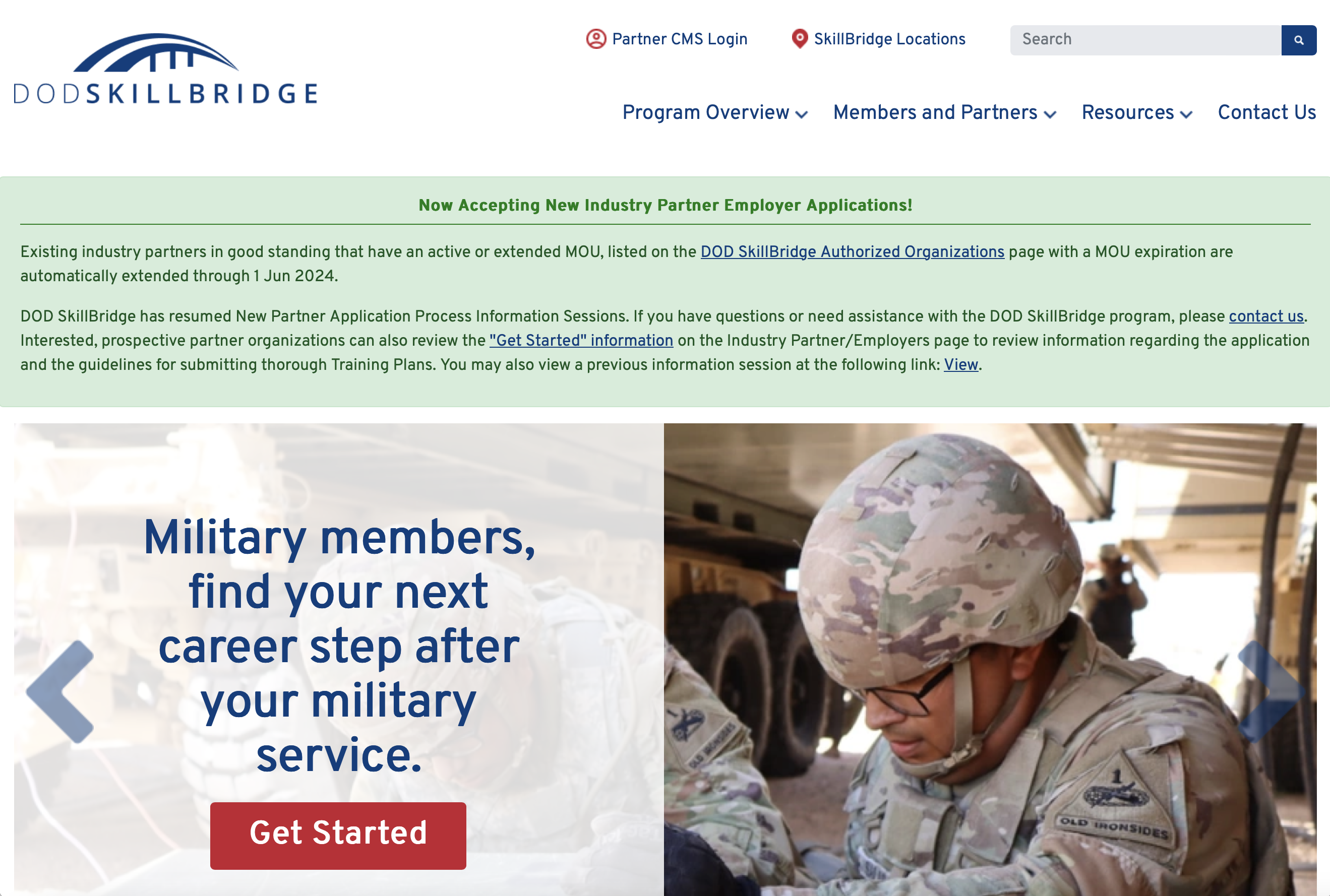 A program designed for training and development for active duty military who are within 180 days of transitioning to the civilian sector.