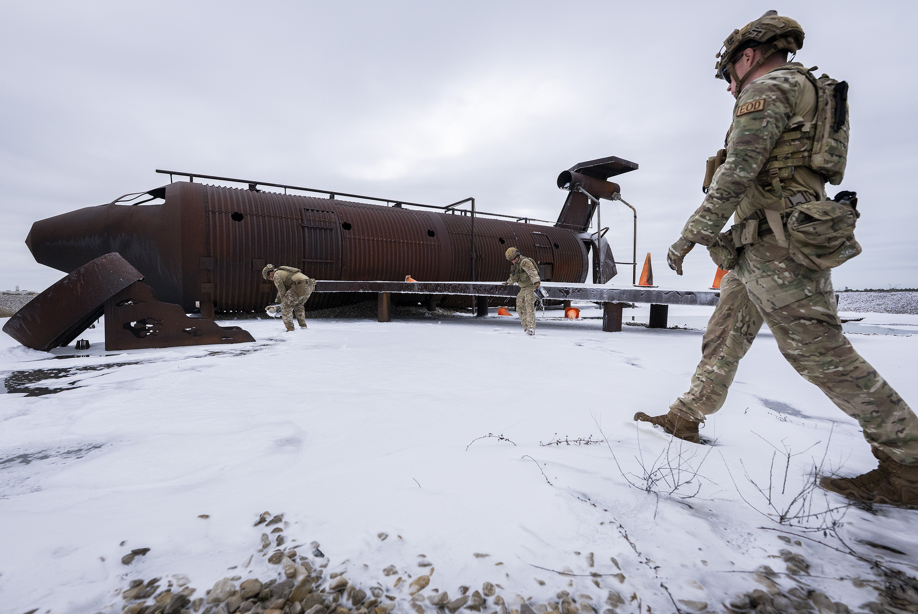 Explosive ordnance disposal teams responded to secure the aircraft munitions and confirmed the area was safe from explosive hazards.